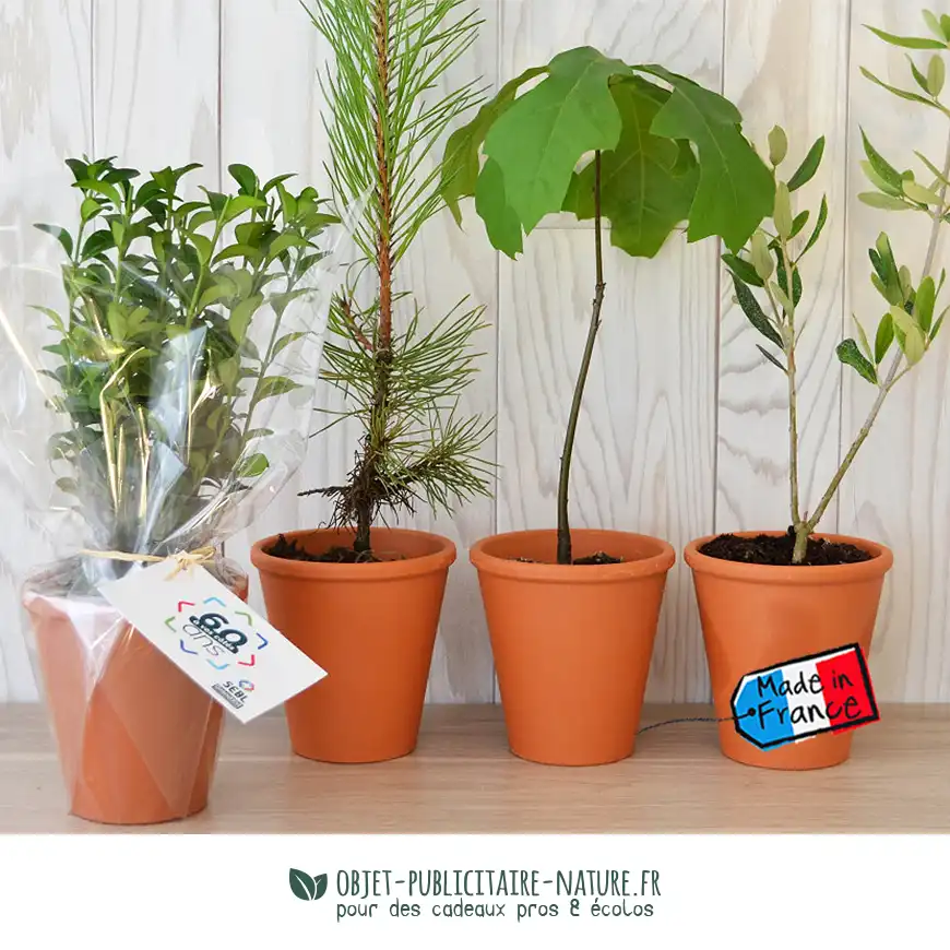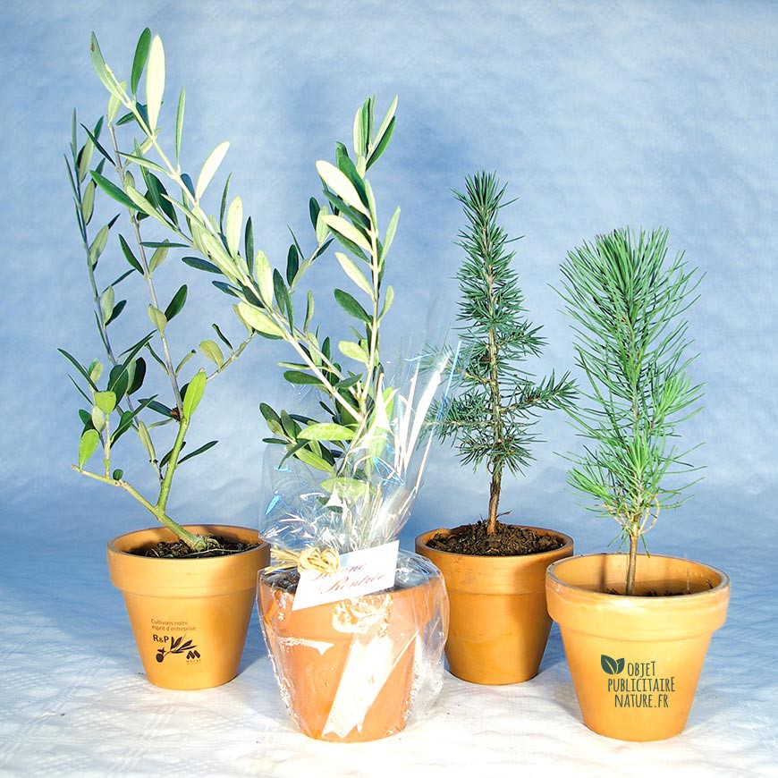 Tarifs plants d’arbres publicitaires en pot terre cuite personnalisable