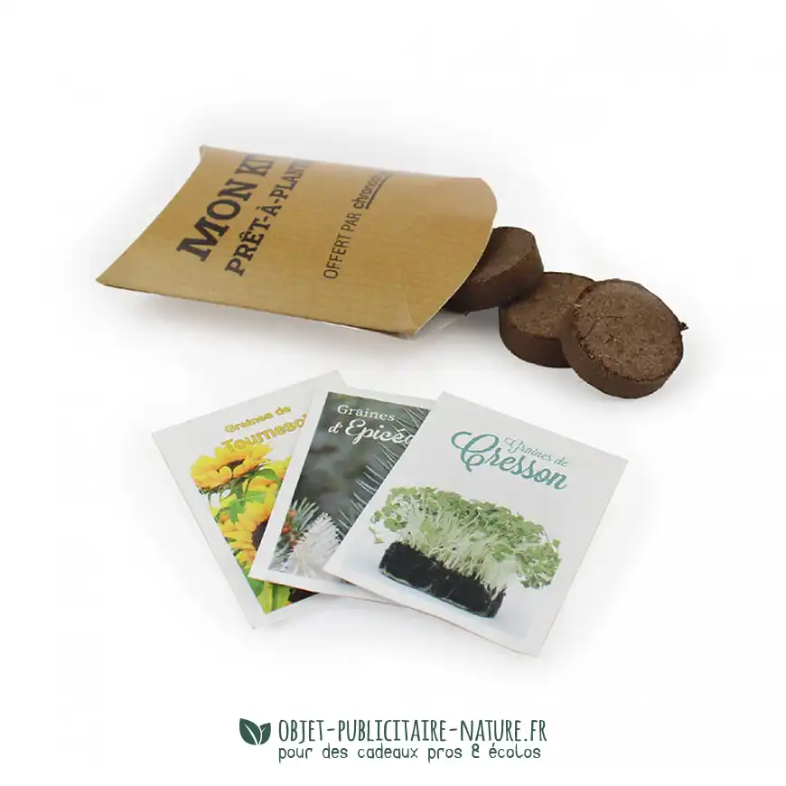- Ouvrez le berlingot pour découvrir les sachets de graines et les plaquettes de tourbe.