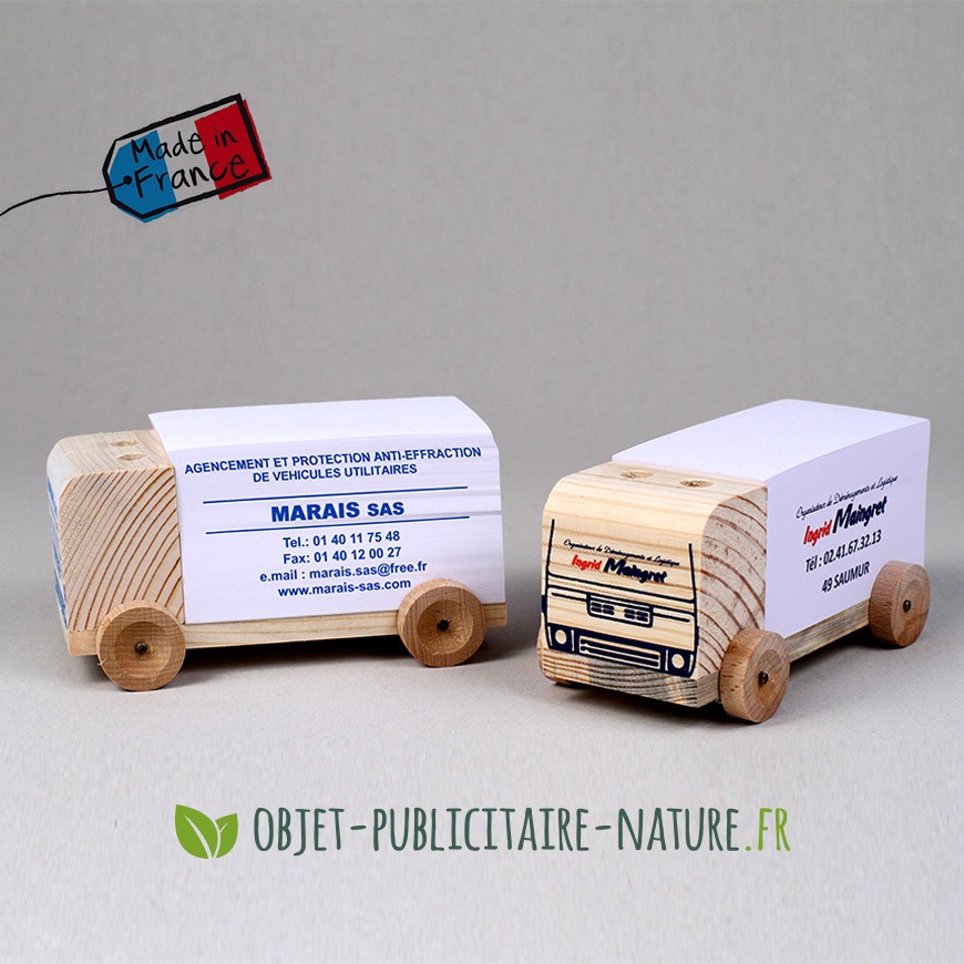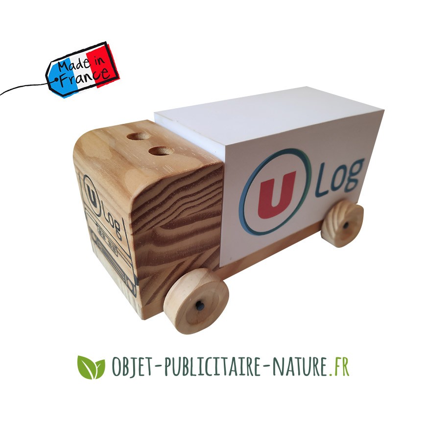 Le bloc note sur camion en bois est un objet publicitaire personnalisable et 100% « Made in France ».
