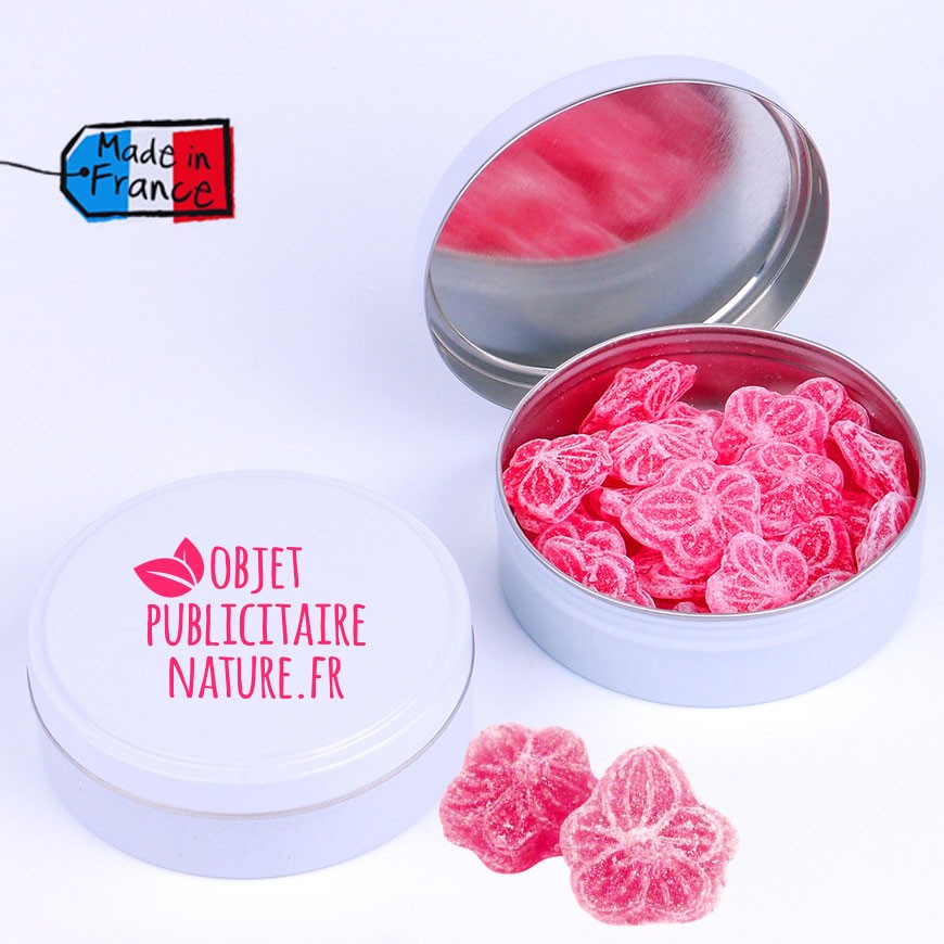 Tarifs unitaires HT boîte bonbons personnalisable 70mm 50 Gr – Pastille à la rose