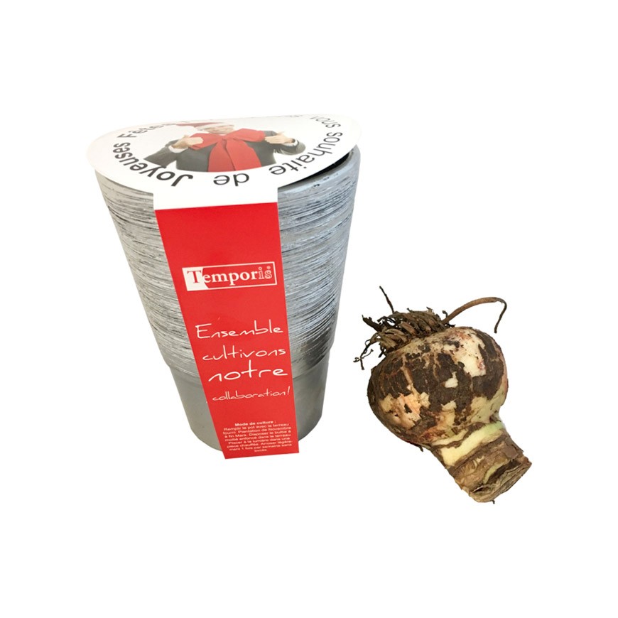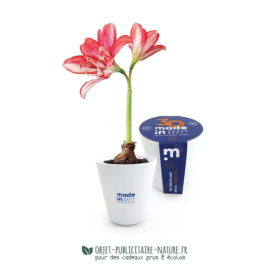 Le pot est émaillé argenté ou en céramique blanc, il contient un sac de terreau et des bulbes adaptés aux fêtes de fin d’année.