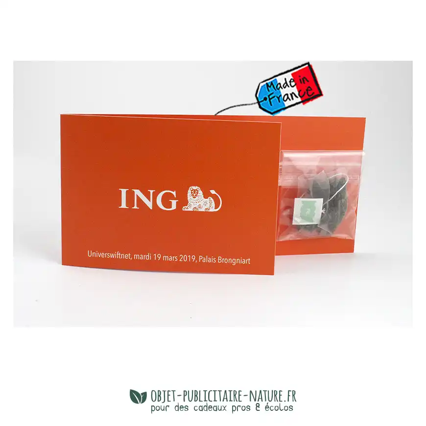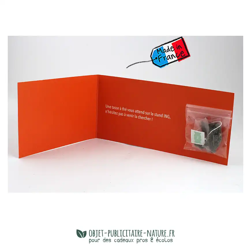Carte format 21×10 cm personnalisée avec de sachet thé bio