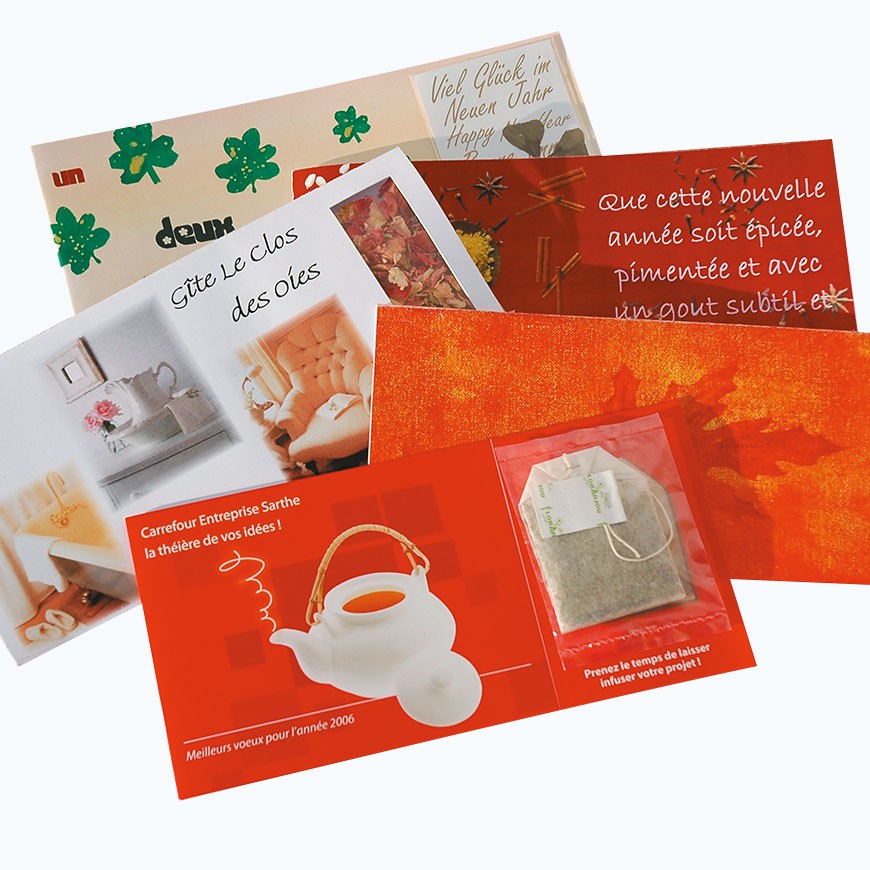 Envoyer une carte de voeux longue avec sachet de thé bio à vos clients c’est être certain de faire plaisir et de surprendre vos clients.