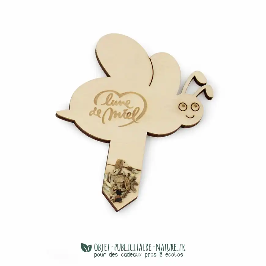Les graines sont fixées sur le bâton en bois à l’aide d’une colle naturelle, facile à planter. Il suffit d’enfoncer le stick en terre jusqu’au trait indiqué, et le message de votre campagne reste visible tout au long de la croissance des plantes. Plusieurs formes de sticks sont disponibles pour s’adapter à vos besoins : abeille , cœur , ou sapin , idéales pour des campagnes créatives et originales.