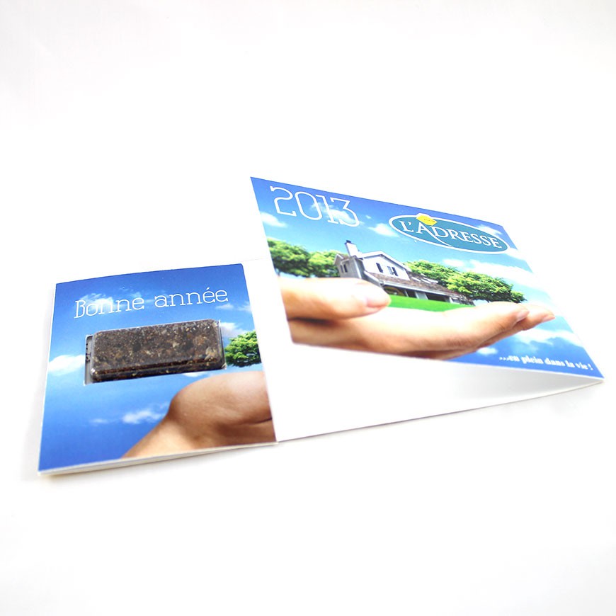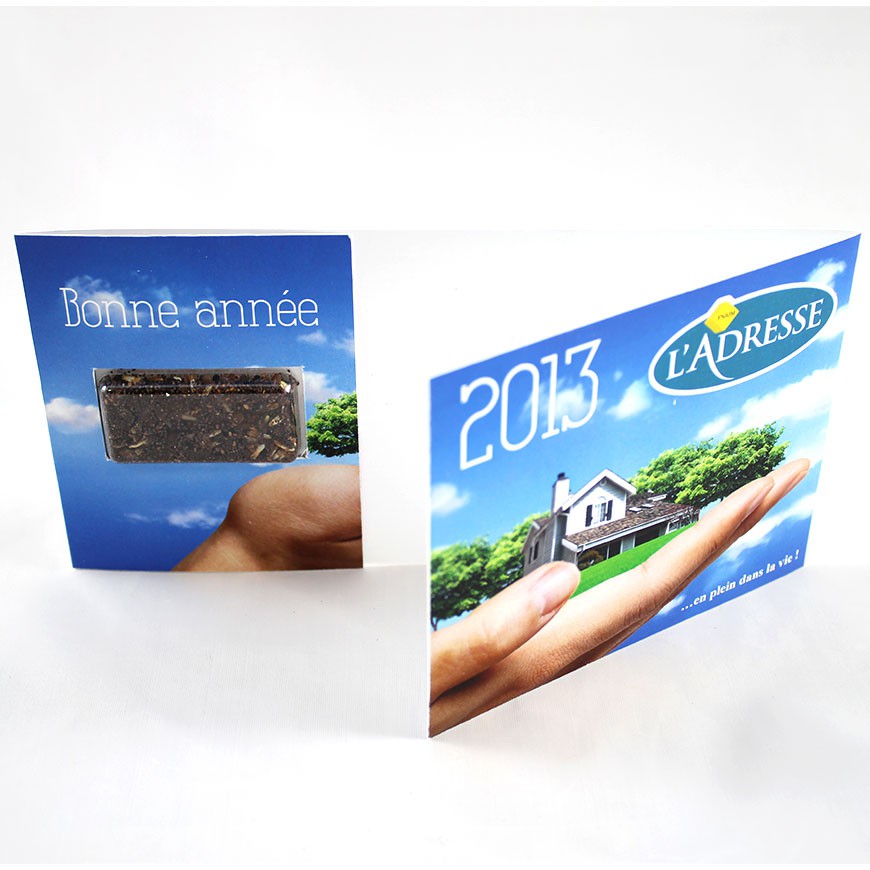 Envoyer une carte de voeux longue avec capsule de graines à vos clients c’est être certain de faire plaisir et de surprendre vos clients.
