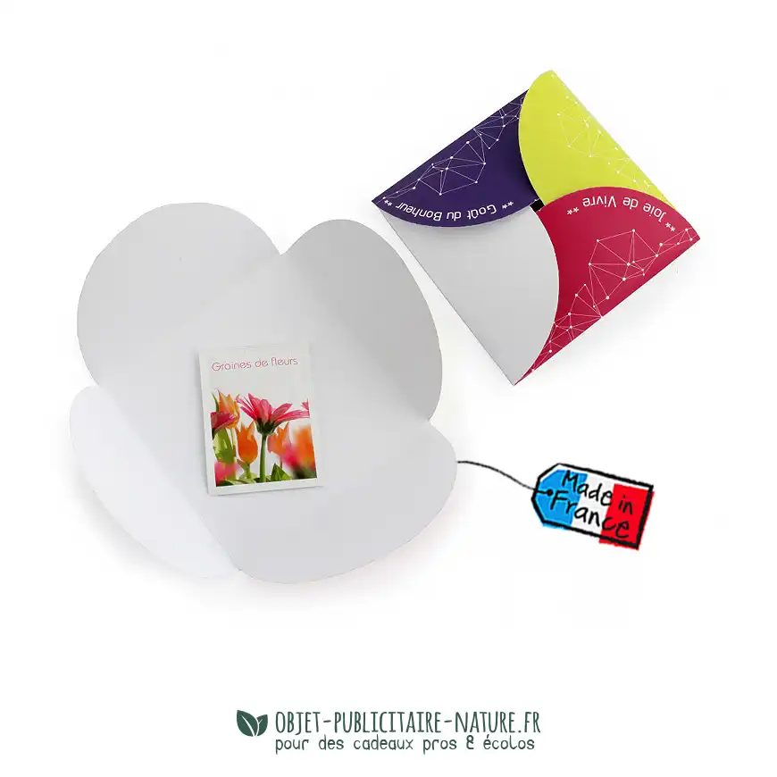 Graines proposées avec la carte de voeux 2026 écologique avec découpe fleur :