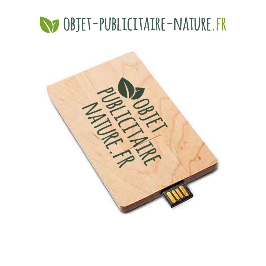 Clé USB carte bois, fabriquée en bois d’érable avec une puce UDP.