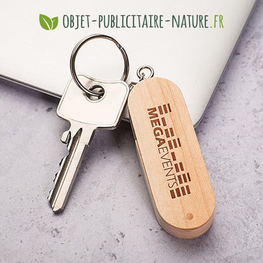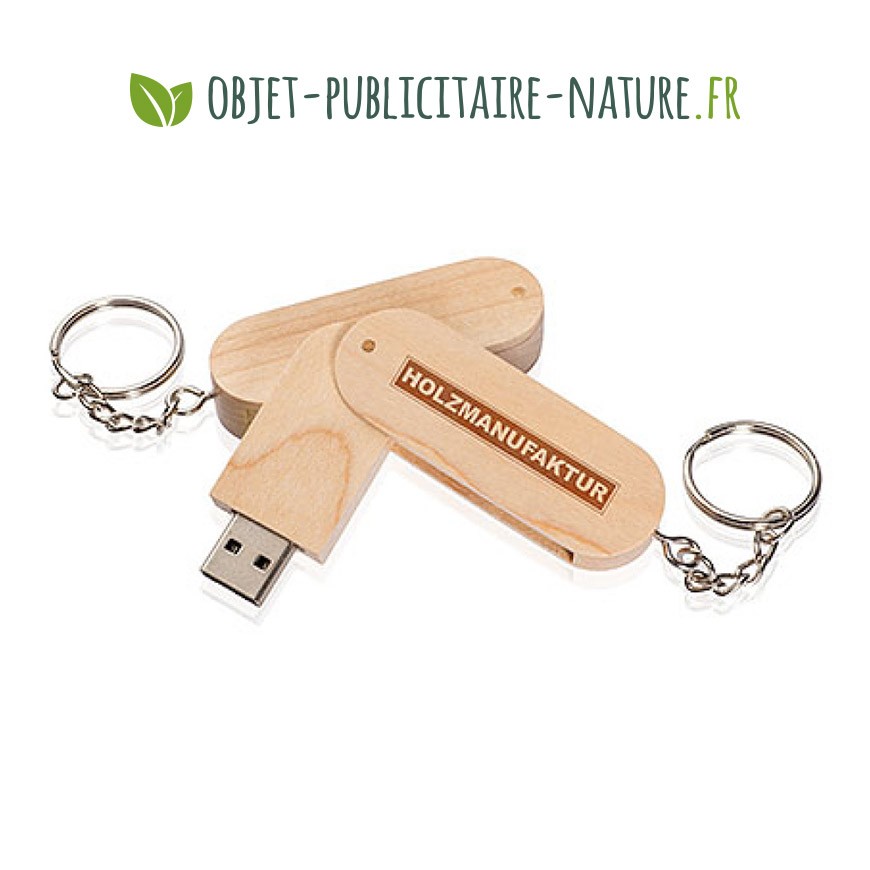 Clé USB en bois rotative personnalisable avec fonction porte-clé