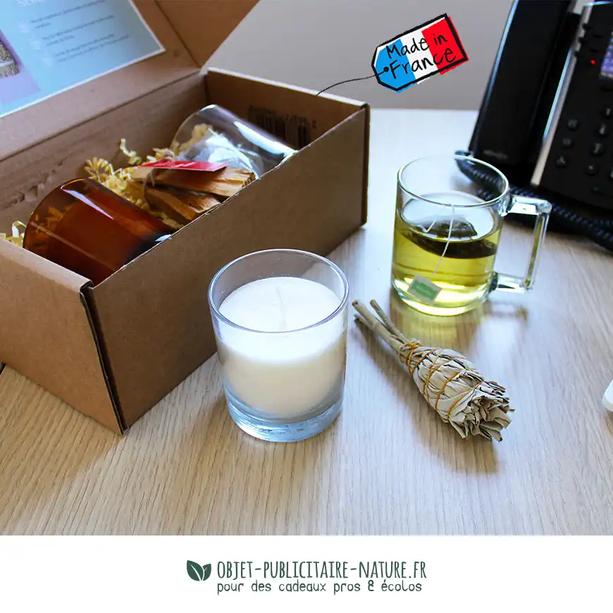 Créez des moments de détente inoubliables grâce à notre Box Bien-être, un goodie RSE parfait pour vos cadeaux d’affaires.