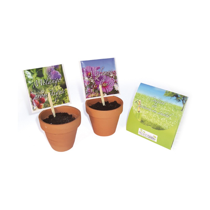 Tarifs coffret publicitaire personnalisable 2 sachets de graines