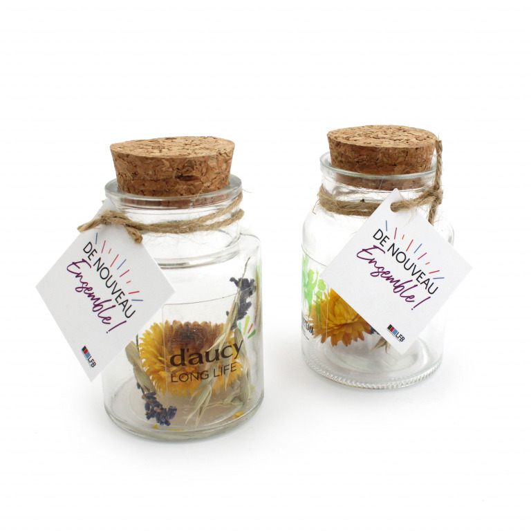 Offrez un flacon en verre contenant des fleurs séchées naturelles, parfait pour marquer vos campagnes publicitaires ou événements d’entreprise. Ce produit, à la fois élégant et durable, est une belle attention qui s’adapte à tout type d’environnement, tout en véhiculant un message de durabilité et de raffinement.