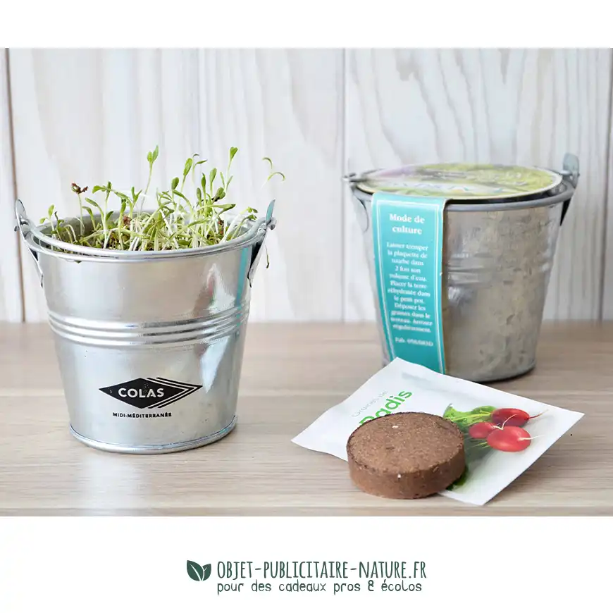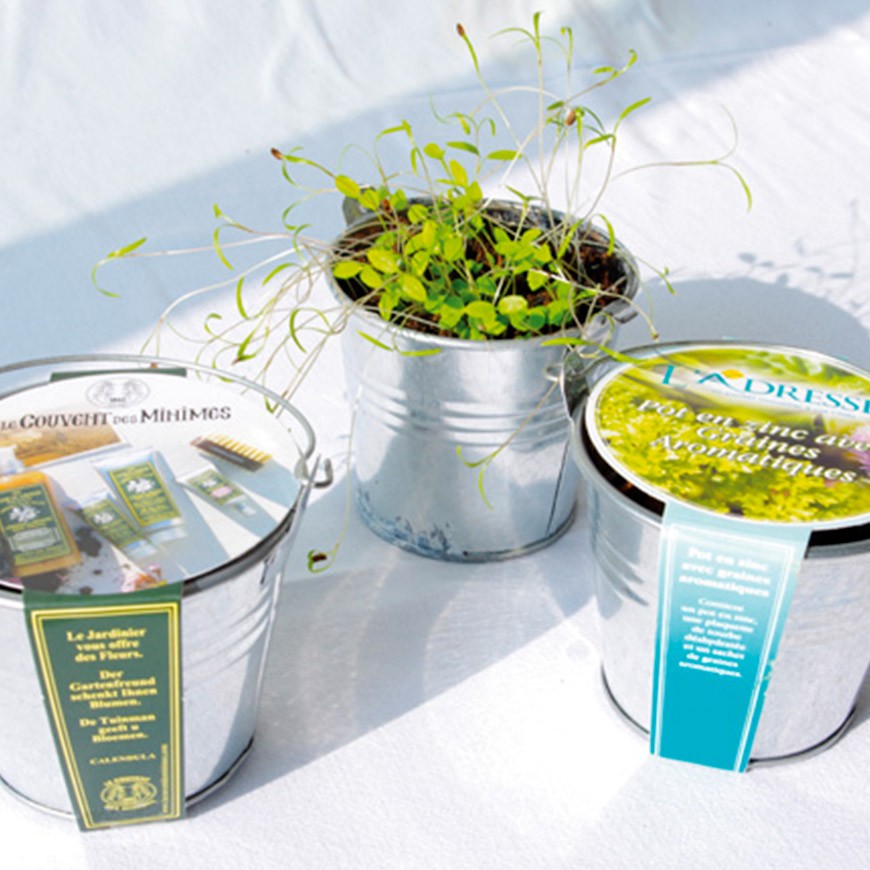 Le kit de plantation pot zinc est un cadeau publicitaire nature très apprécié !