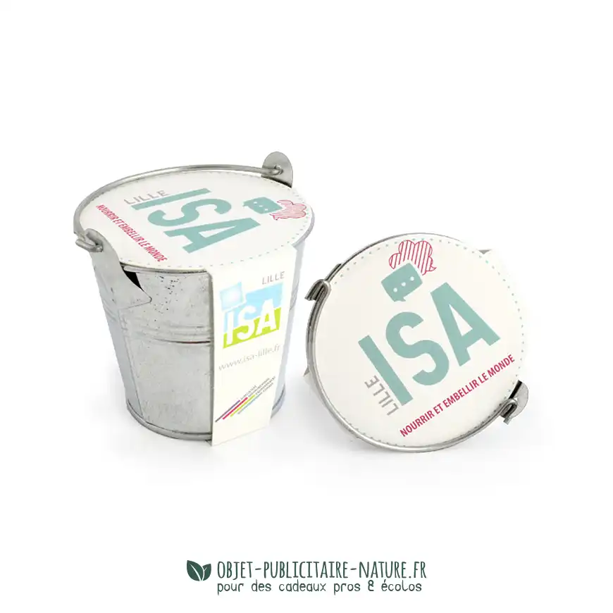 Petit objet publicitaire, écologique, facile à distribuer. Offrir un kit de plantation zinc à vos clients c’est l’assurance de leur faire plaisir.