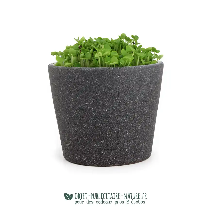 Ce kit de plantation publicitaire est idéal pour vos campagnes marketing ou cadeaux d’entreprise. Il inclut un pot en ardoise personnalisable, permettant à chacun d’ajouter sa touche personnelle à son petit jardin d’intérieur.