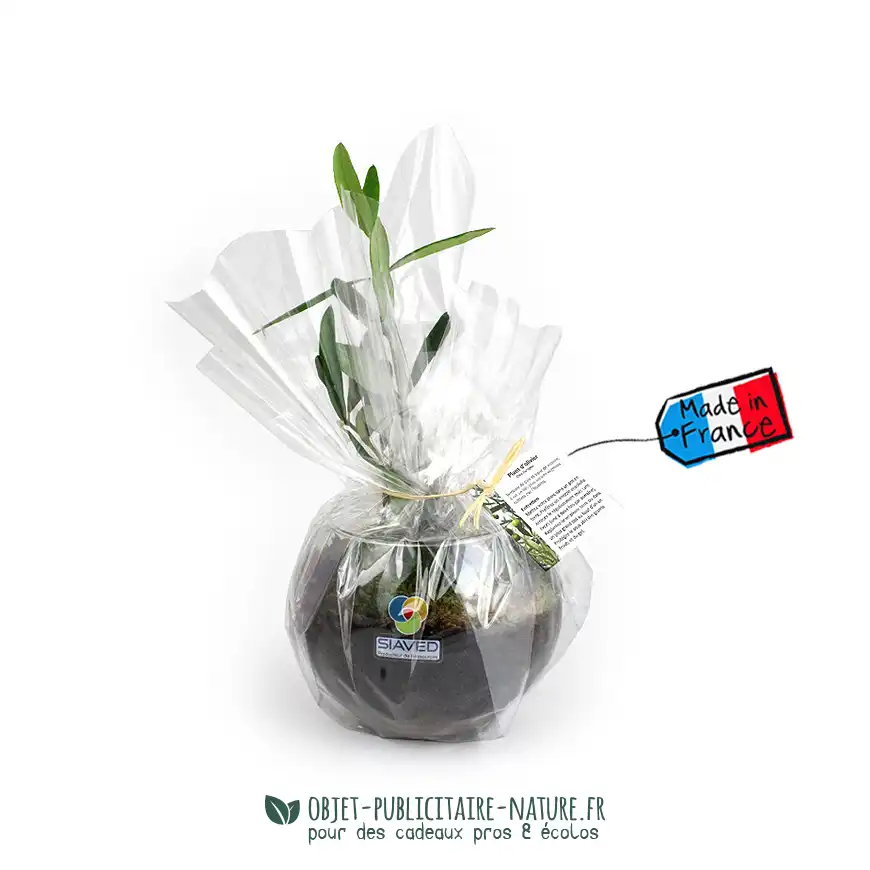 Cet objet publicitaire naturel et écologique contient un véritable plant d’olivier !