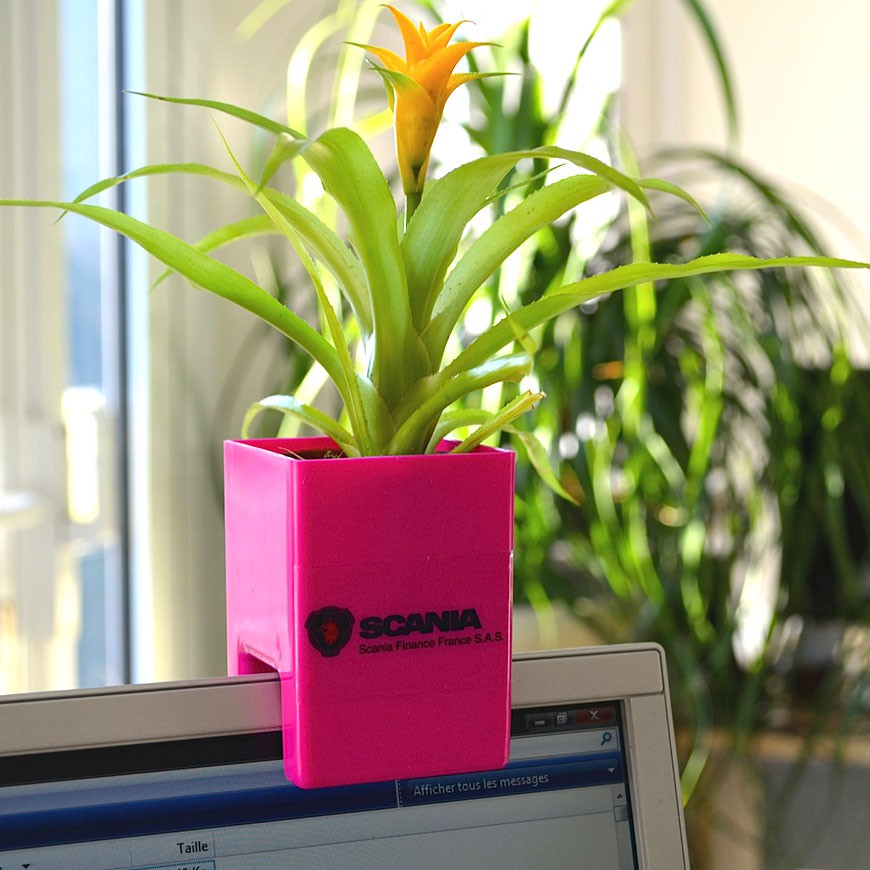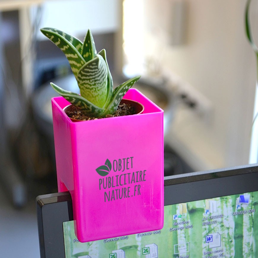Pot avec forme adaptée, à poser sur son écran d’ordinateur.
