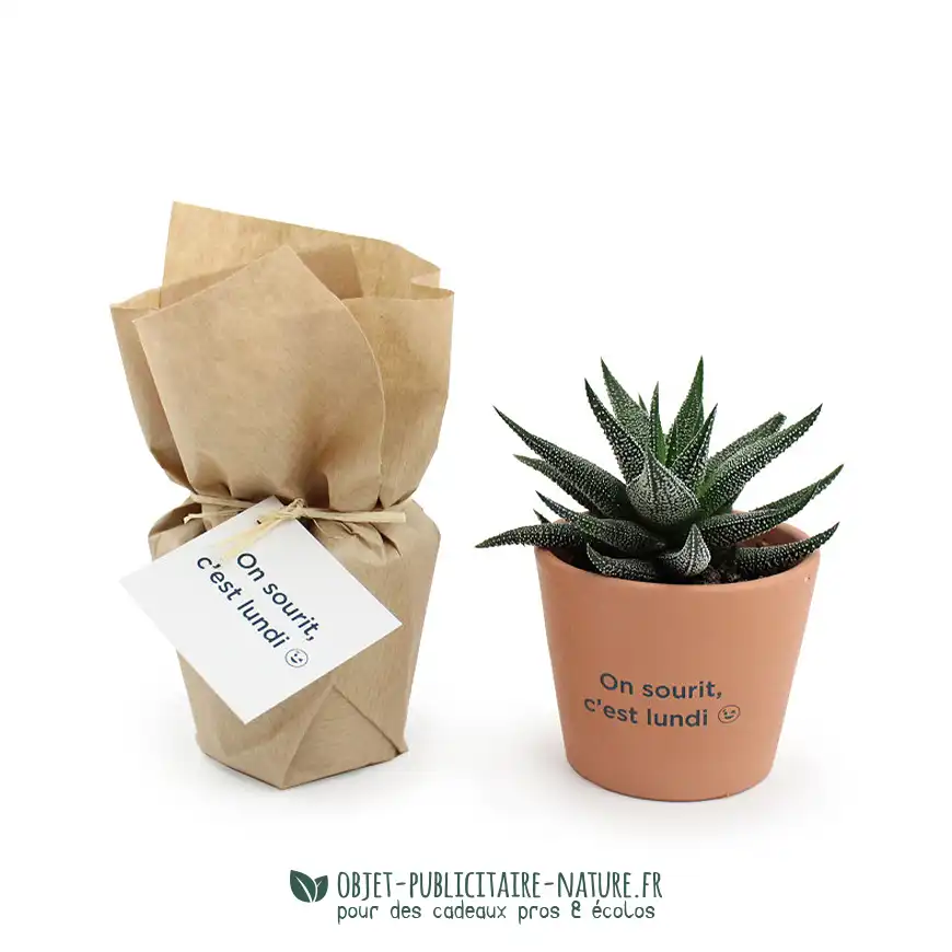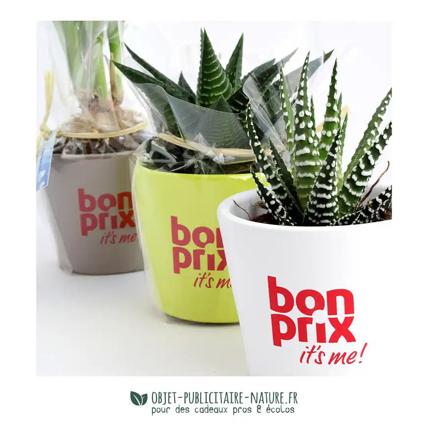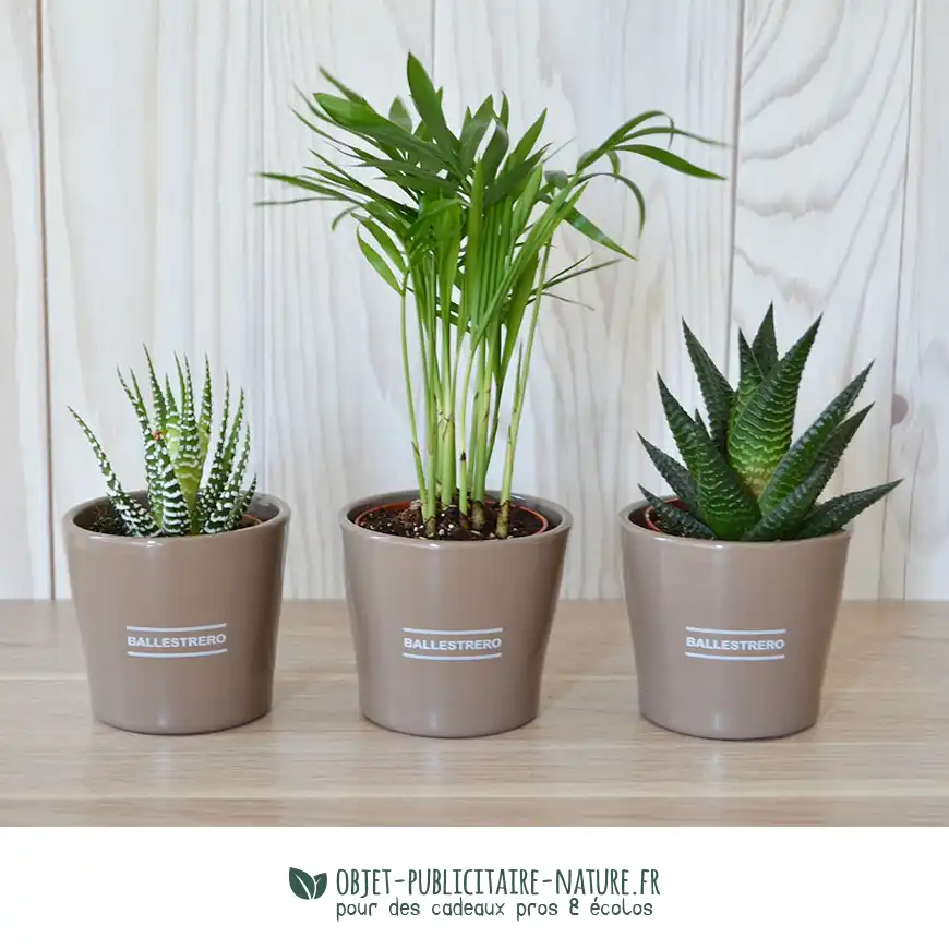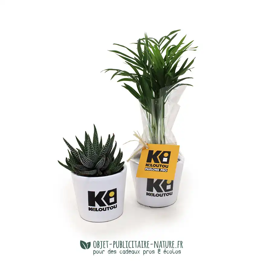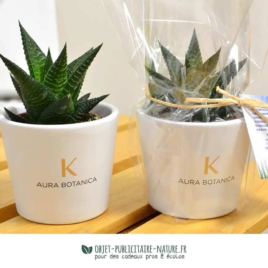 Plante publicitaire dépolluante en pot céramique rond 7 cm à offrir !