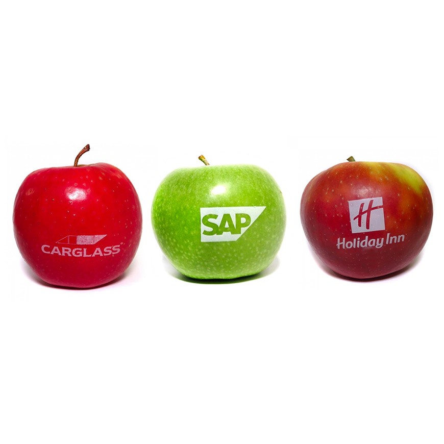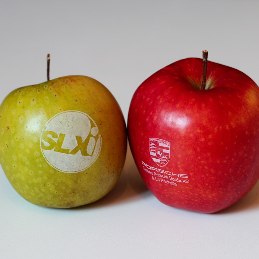 Pomme publicitaire personnalisable à l’encre alimentaire pour vous démarquer, naturellement…