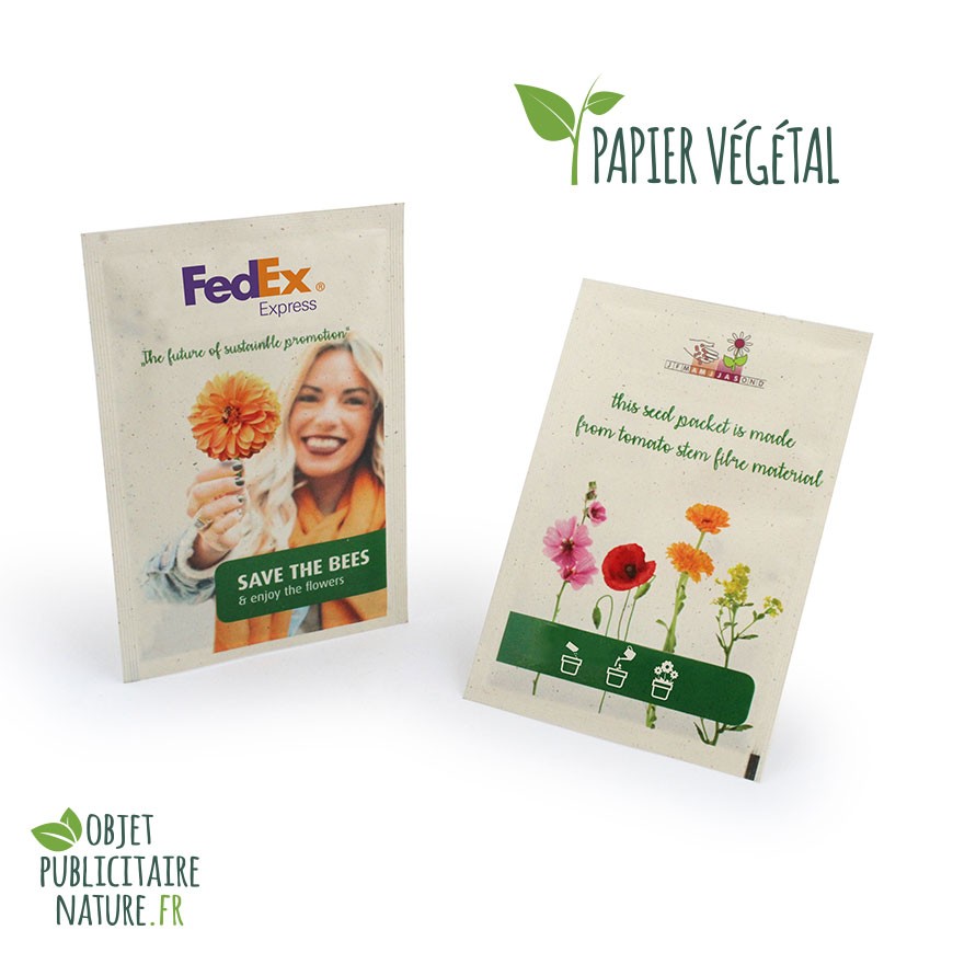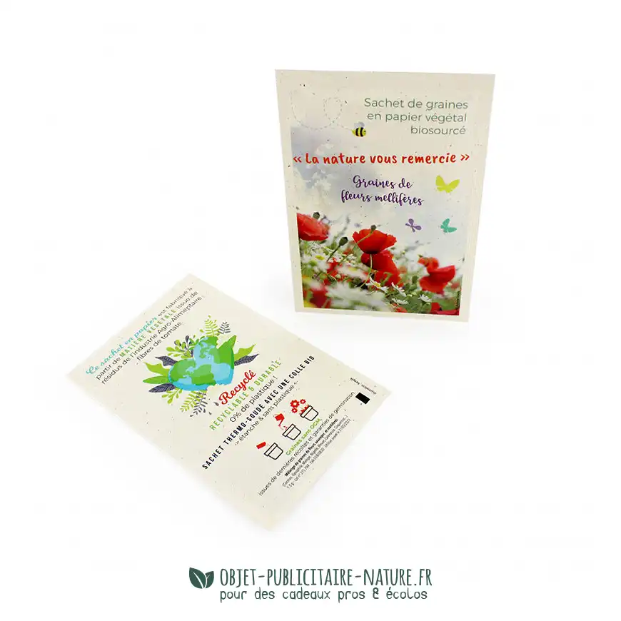 Sachet de graines personnalisé à votre communication en quadrichromie recto et verso selon gabarit.