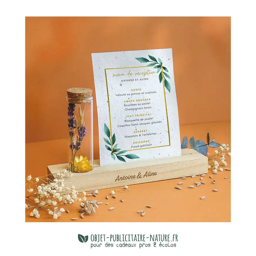 Avec sa personnalisation multiple (bois et papier), ce support garantit une visibilité constante et associée à des valeurs positives et écologiques.