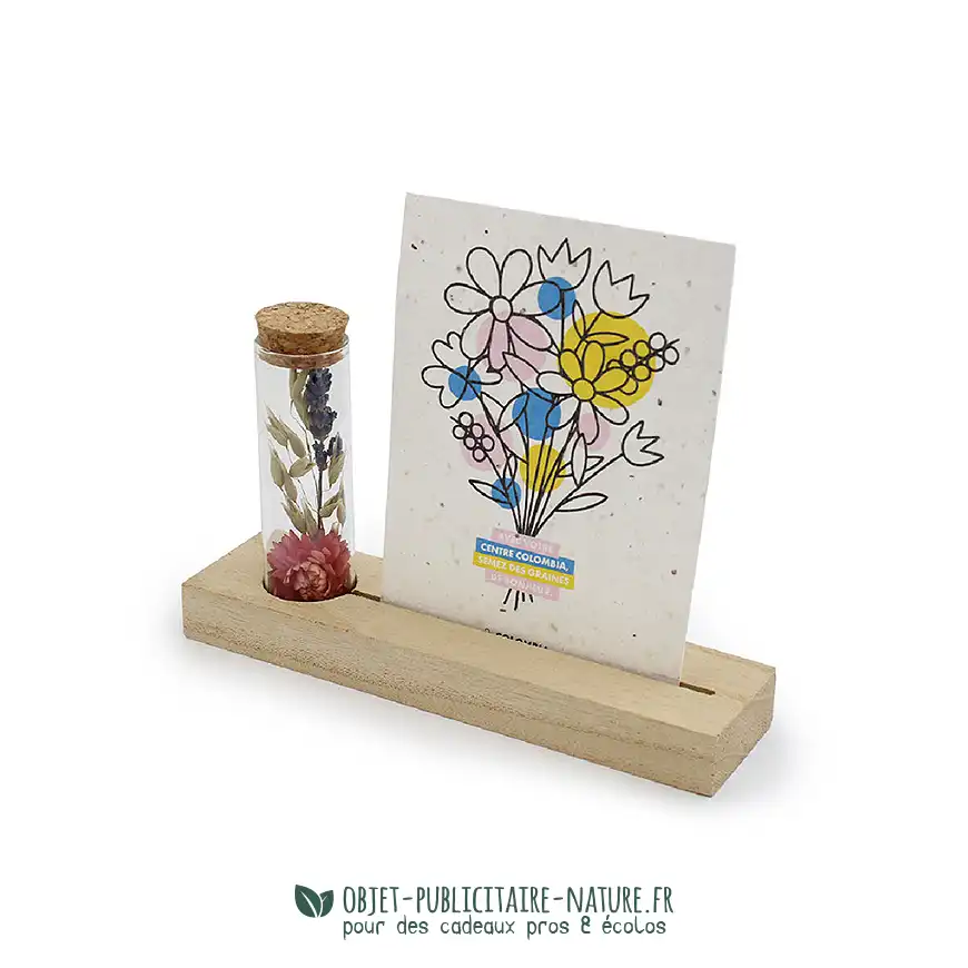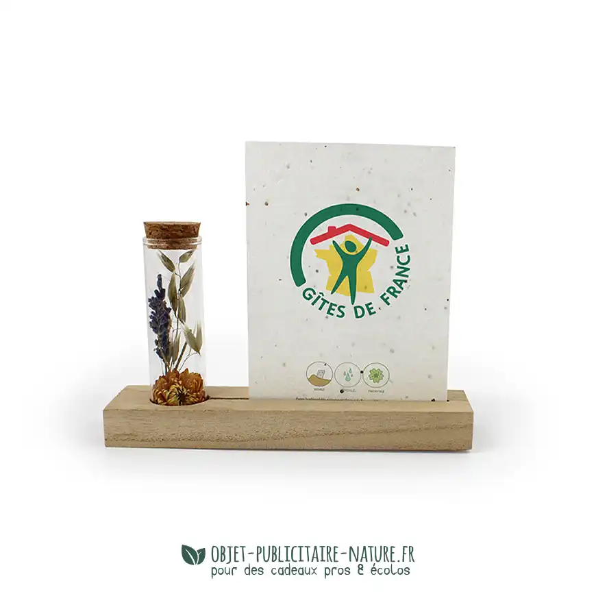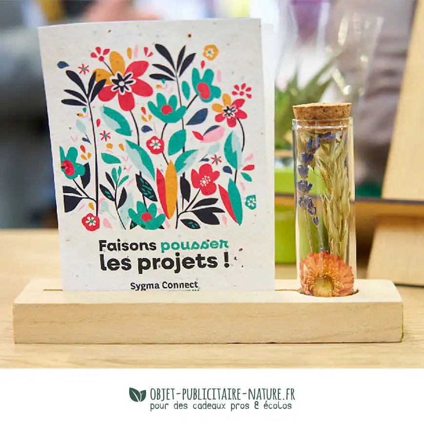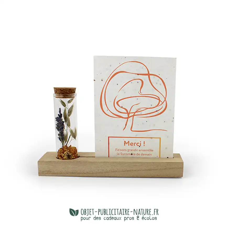 Le support floral avec fleurs séchées est un objet publicitaire original et élégant, parfait pour associer votre marque à des valeurs écologiques et esthétiques. Idéal pour embellir un espace sans nécessiter d’entretien, ce produit made in France conjugue raffinement et durabilité.