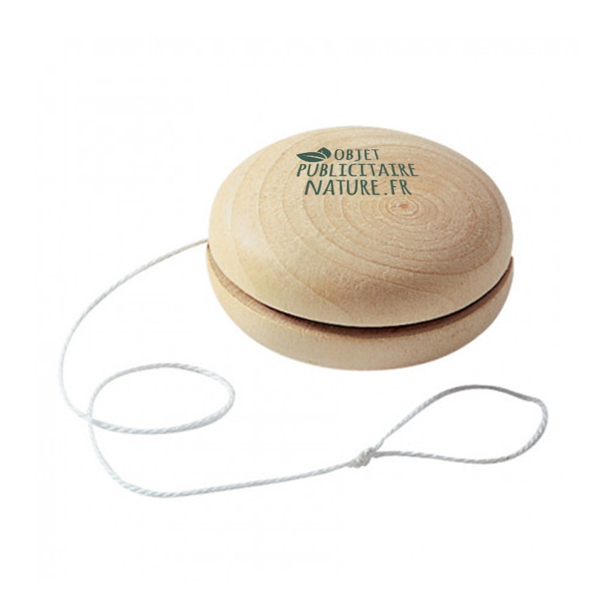 Yoyo publicitaire en bois naturel avec ficelle blanche. Ce yo-yo est un objet publicitaire original qui ravira des petits et les grands.